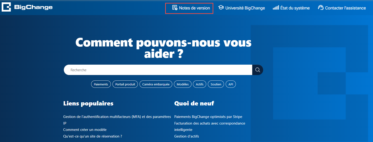 Découvrez les notes de version nouvellement redesignées ici, ou accédez-y à tout moment depuis le menu principal du Guide d’aide.